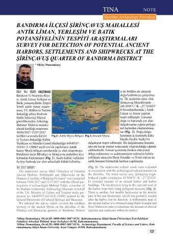 hattından başlanmıştır (Fig. 1). Sualtı kültür varlıkları yebilmek amacıyla Deep Sounder ve Total station ile